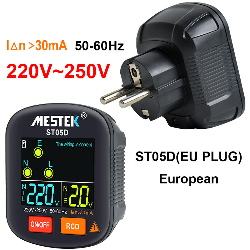 Questo strumento può essere utilizzato per rilevare la polarità del cablaggio della presa di alimentazione a tre fori e questo strumento può essere ampiamente utilizzato a casa, in fabbrica, in laboratorio e in altri luoghi. Se stai cercando questo strumento, vieni a provare, non ti deluderà. Caratteristiche: Dimensioni portatili: le dimensioni ridotte di questo strumento sono molto comode per l'uso quotidiano, puoi portarlo nella borsa degli attrezzi senza occupare troppo spazio di archiviazione. Ampio schermo a colori: l'ampio schermo ti consente di leggere i dati in modo più chiaro, puoi usarlo anche al buio. Questo strumento può essere utilizzato per rilevare la polarità del cablaggio della presa di alimentazione a tre fori, il rilevamento della funzione di protezione dell'interruttore di dispersione e rilevare in modo rapido e preciso il cablaggio. Test RCD: è necessario spegnere tutti gli apparecchi elettrici prima di utilizzare questa funzione. Quindi è possibile inserire il