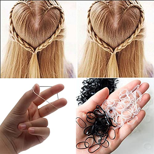 Set di 3000 mini fasce di gomma elastiche, Basicon Mini Rubber Bands 1500 piccoli elastici per capelli neri 1500 elastici per capelli trasparenti per i capelli dei bambini piccoli dreadlocks