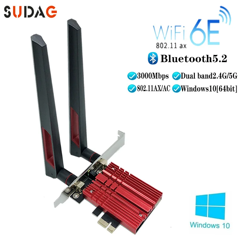 3000Mbps WiFi6E Intel AX210 Bluetooth 5.2 Dual Band 2.4G/5GHz WiFi Card 802.11AX/AC PCI Express Wireless Network Card Adapter PC