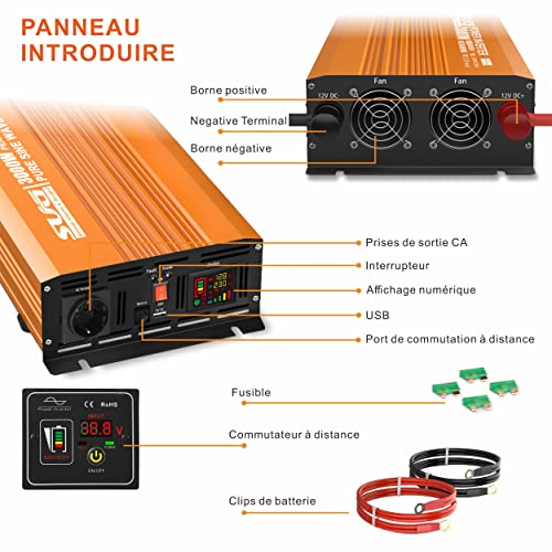 Con interruttore di accensione /spegnimento remoto, cavi remoti 2 metri lunghi. Display a LED mostra la tensione della batteria DC e il livello di carica della batteria rimanente. Utilizzo del monitor e tensione della batteria.
