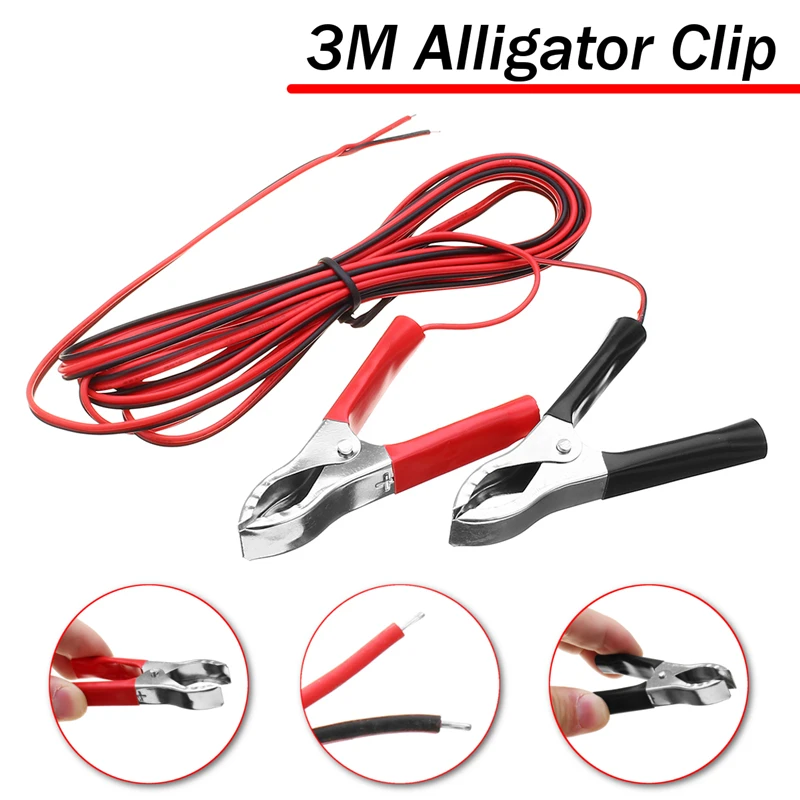 2 pcs of 300cm Length 3A Red+Black Color Alligator Clip Wiring Copper Plated Insulated Car Battery Clips Alligator Clamps