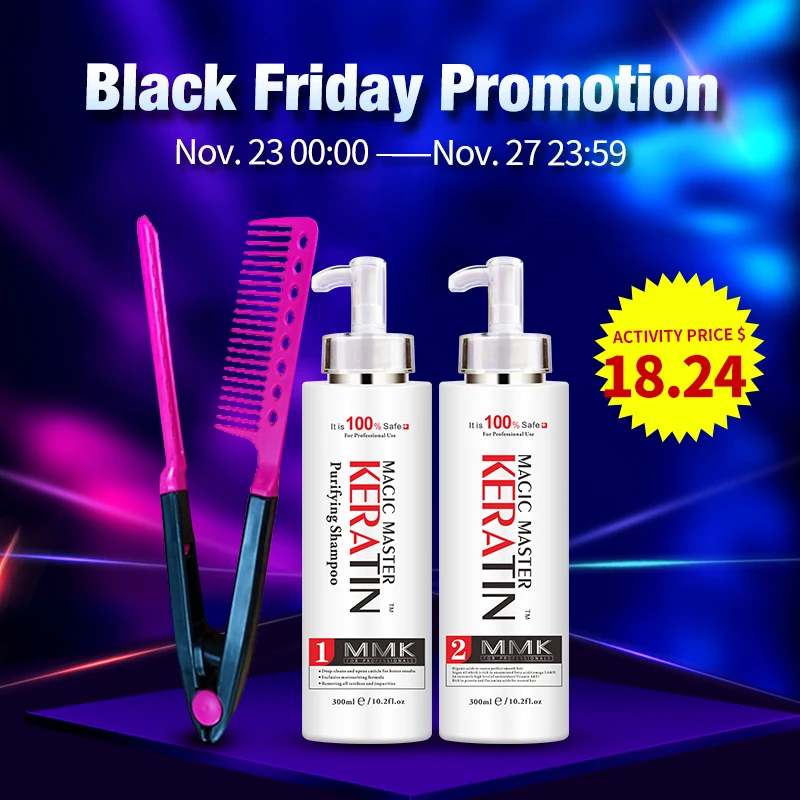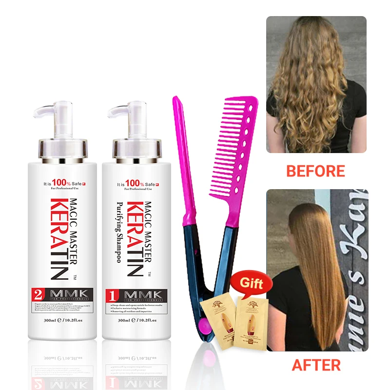 300ml MMK Magic Master Keratin Without Formalin + Purifying Shampoo Straighten Hair Set Get Free Comb