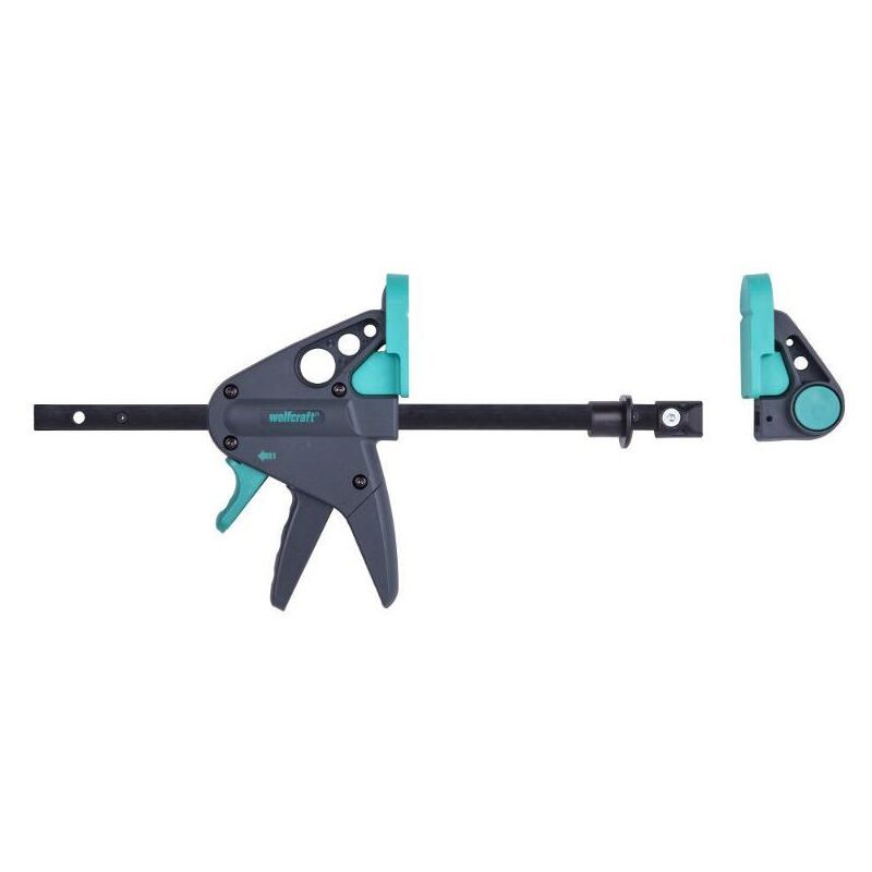 Wolfcraft Morsetto banco da lavoro PRO 65-150-W Per il bloccaggio su tutti i tavoli con fori da 20 mm compatibile con tutti i fori da 20 mm, come ad es. nei tavoli della serie wolfcraft MASTER, larghezza di serraggio 120 mm per svariate possibilità di fissaggio dei pezzi con forza di serraggio fino a 90 kg Made in Europe in plastica rinforzata con fibre di vetro di alta qualità e acciaio temprato per una lunga durata ganasce gommate con scanalatura a V per bloccare e serrare in modo sicuro e delicato pezzi circolari Descrizione del prodotto Il morsetto banco da lavoro PRO 65-150-W è l'integrazione perfetta per tutti i tavoli con fori da 20 mm ad es. i tavoli della serie wolfcraft MASTER. Mentre i morsetti comuni devono essere fissati ai bordi esterni del tavolo, il nuovo morsetto banco da lavoro può essere bloccato in qualsiasi foro da 20 mm. Questo morsetto permette di fissare facilmente sulla superficie pezzi con altezza fino a 120 mm. Per l'impiego opzionale come morsetto per uso