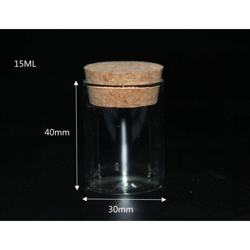Caratteristica: pacchetto: 10 pz (Bottiglia + Sughero) 30*40mm capacità: 15ml(misura da Acqua) Brand New e di Alta qualitàmateriale: Vetro Borosilicato + Corkcolore: Trasparente