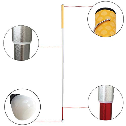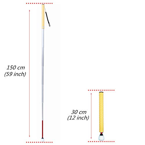 30cm-150cm Alluminio Bastone Bianco Telescopico,7 Sezioni, Con 2 Punta Roller,Per Non Vedenti