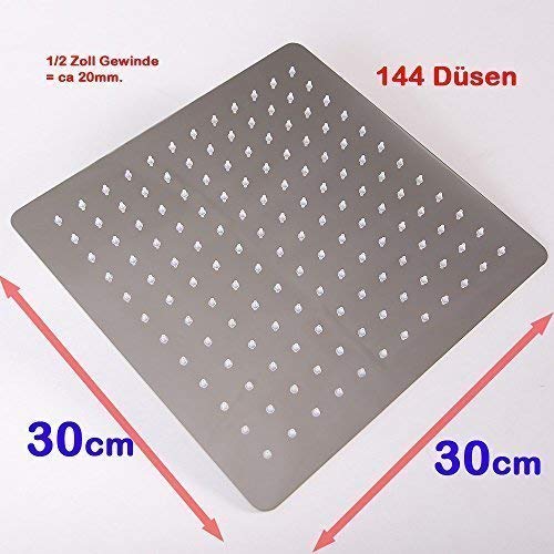 Questo soffione ha tutto. realizzato in acciaio inox, cromato e con ugelli di 2mm spessi 144 solo che sono distribuiti in 12 righe di 12 getti godono l'operazione di doccia con una sensazione nuova.