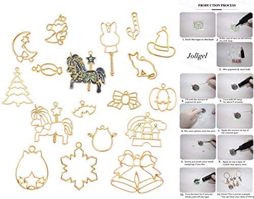 8x 30ml Kit creazione gioielli resina epossidica UV trasparente 16 stampi silicone (12 pendenti a costellazioni) 17 mascherine aperte indietro 13 pigmenti colori 36 decorazioni + lampada e pinzette