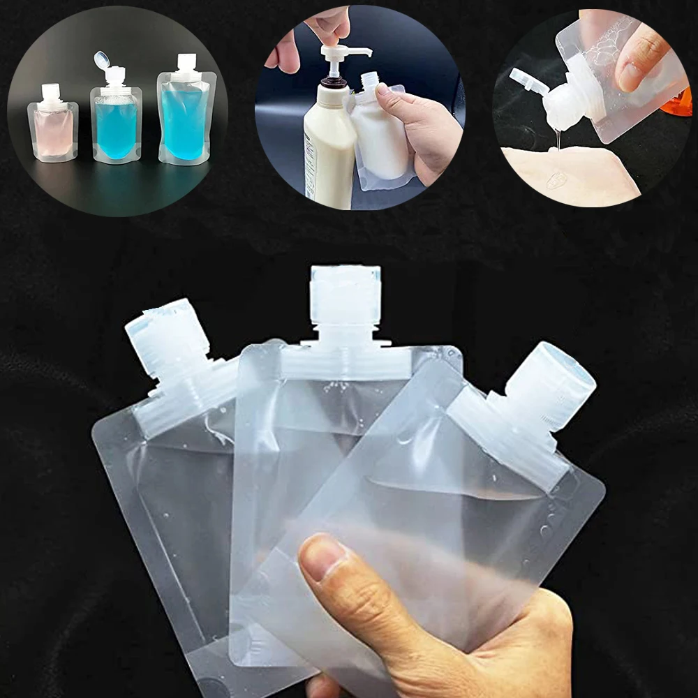 30ml/50ml/100ml Clear Reusable Leakproof Refillable Pouches Cosmetic Containers for Shampoo Lotion Liquid Dispenser