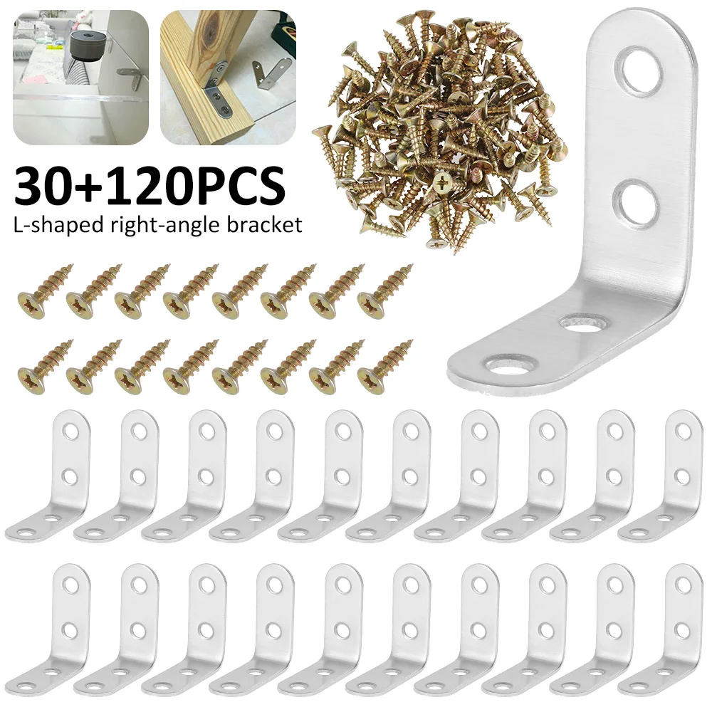 30Pcs Stainless Steel Angle Corner Brackets Fasteners Protector Seven Size Corner Stand Supporting Furniture Hardware With Screw
