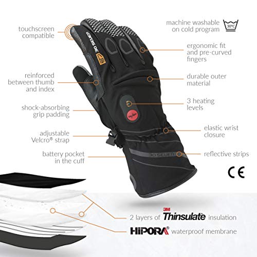 30seven - Guanti riscaldati termici Race, per bicicletta, motocicletta, airsoft paintball, adatti per il fenomeno di Raynaud, riscaldamento a lunga durata, 30seven beheizbare Handschuhe, nero, XL