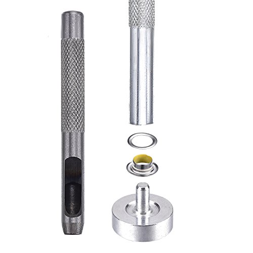 Strumenti di installazione: tra cui una base, un punzone e uno strumento di installazione, lo strumento di perforazione può essere applicato per colpire un foro sulla pelle, cinghie di cuoio, abbigliamento e poi martellarlo per spingere le 2 parti di gommini