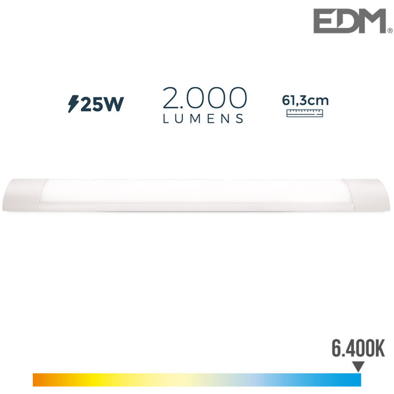 Acquista su Patner Iberia i migliori strumenti e accessori per la casa e il lavoro > Riferimento: E3/31680 Striscia Led Elettronica 25W 6400K Luce Fredda Ip20. 180 LED. 2000Lm (Con Supporti) Angolo Di Apertura 160°. 220-240V Misure: 12X61X3.1Cm (Larghezza/Profondità/Altezza) Edm 25.000H