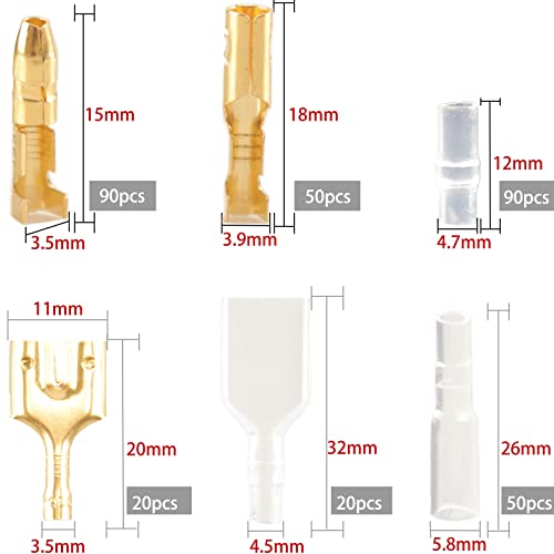 [Il pacchetto include] Il kit di connettori proiettili da 320 pezzi è contenuto in una scatola di immagazzinaggio, facile da riporre e trasportare. Otterrai 90 connettori a proiettile maschio, 50 connettori a proiettile femmina, 20 connettori a doppio proiettile femmina, 90 manicotti isolanti maschi, 50 manicotti isolanti femminili, 20 manicotti isolanti doppi femminili.