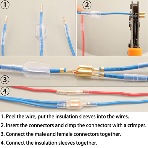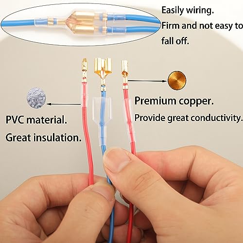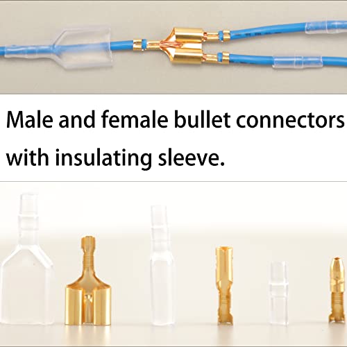 [Applicazioni estese] Questi connettori per terminali a proiettile sono conformi a tutti gli standard elettrici, perfetti per strumenti elettrici e applicazioni automobilistiche. Sia che tu stia lavorando al tuo cavo automobilistico, a un progetto domestico o scientifico, il nostro connettore per cavi per terminali bullet assicurerà che tutto si leghi correttamente.