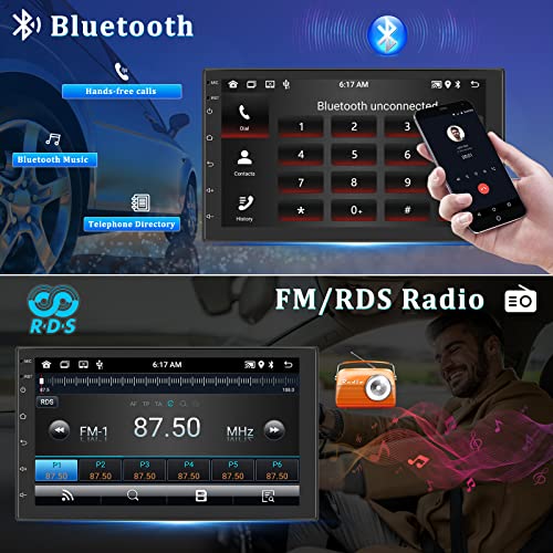 ⛄Bluetooth 4.0 e radio FM: il touch screen dell'autoradio è dotato di Bluetooth 4.0 integrato con A2DP, supporta chiamate o ricezione in vivavoce Bluetooth, riproduzione di musica Bluetooth e caricamento della rubrica. Puoi scaricare la tua musica o film preferiti da riprodurre su questa autoradio. Radio FM digitale di alta qualità, 18 stazioni possono essere preimpostate, ascoltare notizie o canzoni sempre e ovunque.