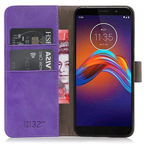 32nd Custodia a Portafoglio in Pelle PU per Motorola Moto E6 Play, Case Realizzato in Pelle Sintetica con Diversi Comparti e Chiusura Magnetica - Viola