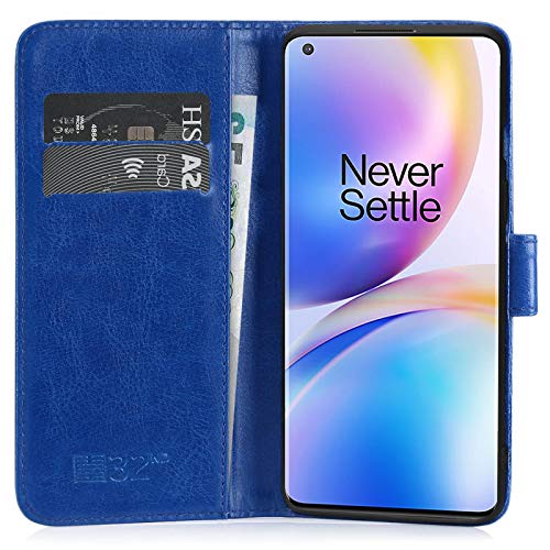 32nd Custodia a Portafoglio in Pelle PU per OnePlus 8 PRO, Case Realizzato in Pelle Sintetica con Diversi Comparti e Chiusura Magnetica - Blu