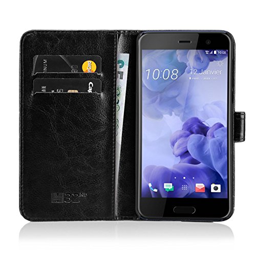 32nd Custodia a Portafoglio in Pelle PU per HTC U Play, Case Realizzato in Pelle Sintetica con Diversi Comparti e Chiusura Magnetica - Nero