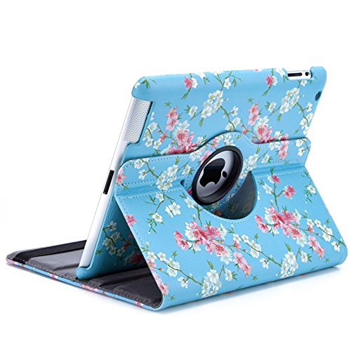 32nd Floreale Series - Custodia Folio in Pelle PU per Apple iPad 2, 3 & 4, Case Realizzato in Pelle Sintetica con Supporto integrato - Primavera Blu