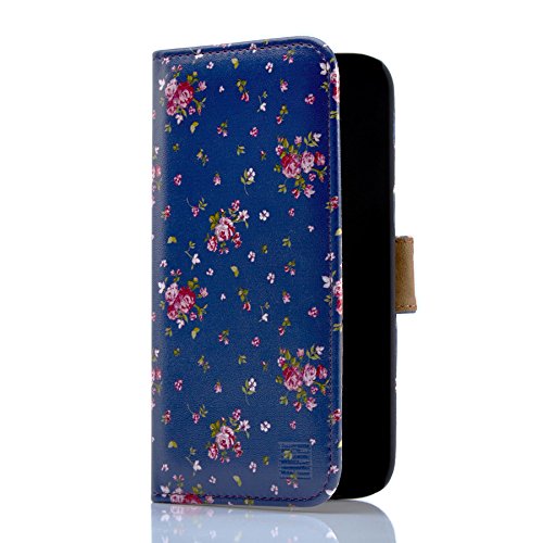 32nd Floreale Series - Custodia a Portafoglio in Pelle PU per Samsung Galaxy A3 (2017), Case Realizzato in Pelle Sintetica con Diversi Comparti e Chiusura Magnetica - Vintage Rosa Blu