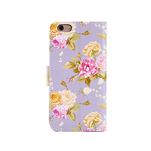 32nd Floreale Series - Custodia a Portafoglio in Pelle PU per Apple iPhone 6 & 6S, Case Realizzato in Pelle Sintetica con Diversi Comparti e Chiusura Magnetica - Vintage Rosa Grigio