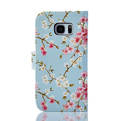 32nd Floreale Series - Custodia a Portafoglio in Pelle PU per Samsung Galaxy S7, Case Realizzato in Pelle Sintetica con Diversi Comparti e Chiusura Magnetica - Primavera Blu