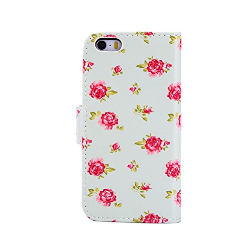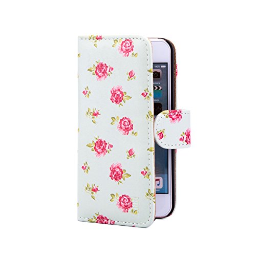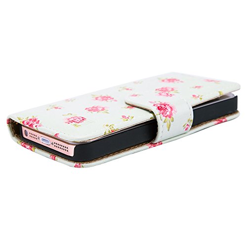 32nd Floreale Series - Custodia a Portafoglio in Pelle PU per Apple iPhone 5, 5S & SE (2016), Case Realizzato in Pelle Sintetica con Diversi Comparti e Chiusura Magnetica - Vintage Rosa Mint