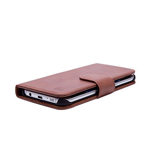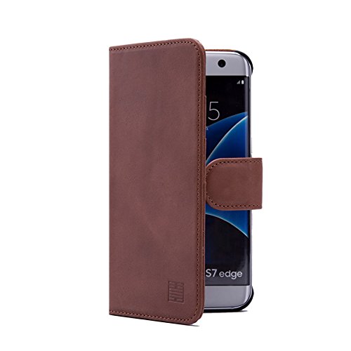 32nd Premium Series - Custodia a Portafoglio in Pelle Premium Vera per Samsung Galaxy S7 Edge, Case Realizzato in Pelle Premium con Diversi Comparti, Chiusura Magnetica e Supporto integrato - Castagna