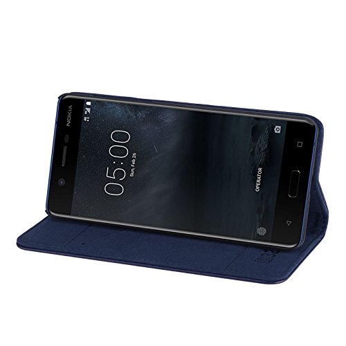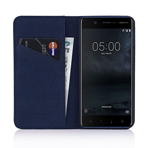 32nd Serie Classica - Custodia a Portafoglio in Pelle Vera per Nokia 5 (2017), Case Realizzato in Pelle Premium con Diversi Comparti, Chiusura Magnetica e Supporto Integrato - Blu Navy