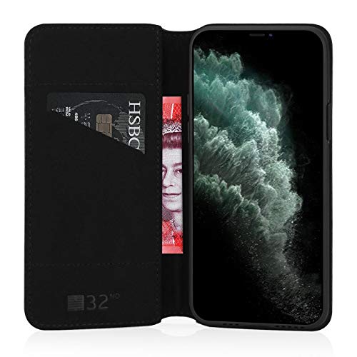32nd Serie Classica 2.0 - Custodia a Portafoglio in Pelle Vera per Apple iPhone 11 PRO Max (6.5"), con Diversi Comparti, Chiusura Magnetica e Supporto Integrato - Nero