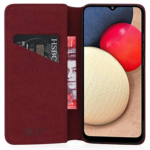 32nd Serie Classica 2.0 - Custodia a Portafoglio in Pelle Vera per Samsung Galaxy A02S, Case Realizzato in Pelle Premium con Diversi Comparti, Chiusura Magnetica e Supporto Integrato - Borgogna