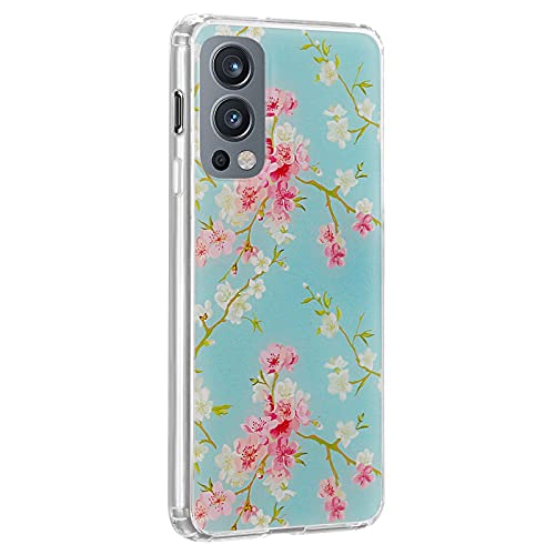 32nd Serie Floreale Gel - Custodia Trasparente con Design Floreale per OnePlus Nord 2 5G, Cover Posteriore Rigida con Bordi in Gel TPU - Primavera Blu