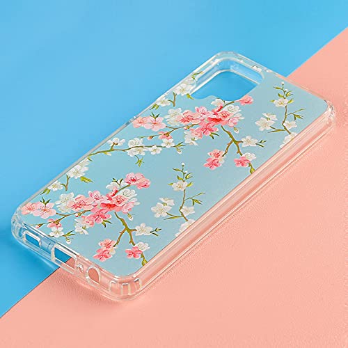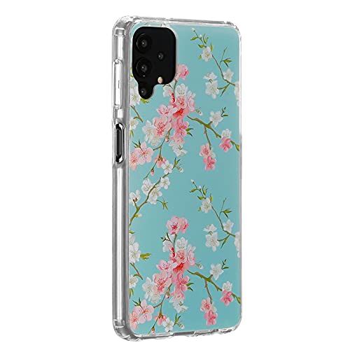 32nd Serie Floreale Gel - Custodia Trasparente con Design Floreale per Samsung Galaxy A12 (2021), Cover Posteriore Rigida con Bordi in Gel TPU - Primavera Blu