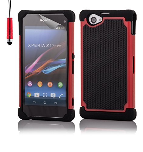 32nd Shockproof Series - Custodia Ibrida Anti-Urti per Sony Xperia Z1 Compact Massima Protezione da Cadute e Urti Protettiva Case Cover - Rosso