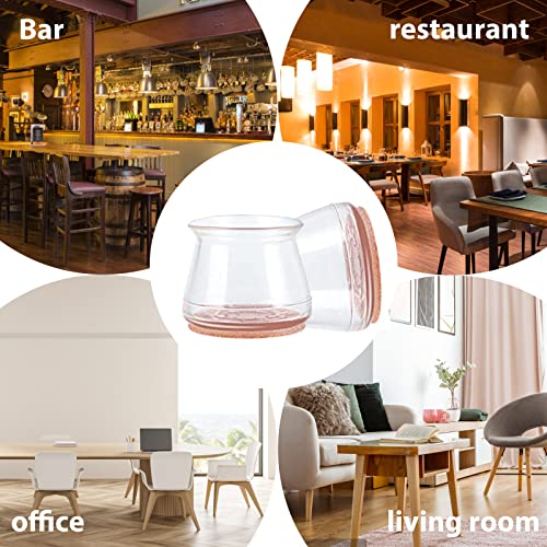 32pcs Gommini Per Sedie,Tappi Sedie Silicone,Tappi Sedie Rotondi Con Imbottitura In Feltro Marrone,Per Proteggere i Pavimenti Da Graffi e Rumori (Trasparente)
