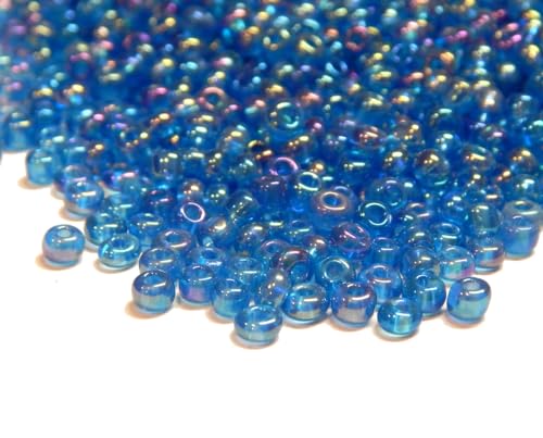 3300 perline in vetro da 3 mm, trasparenti, colore arcobaleno, 8/0, perline pony, mini rotonde, Luster Seed Beads (blu AB)
