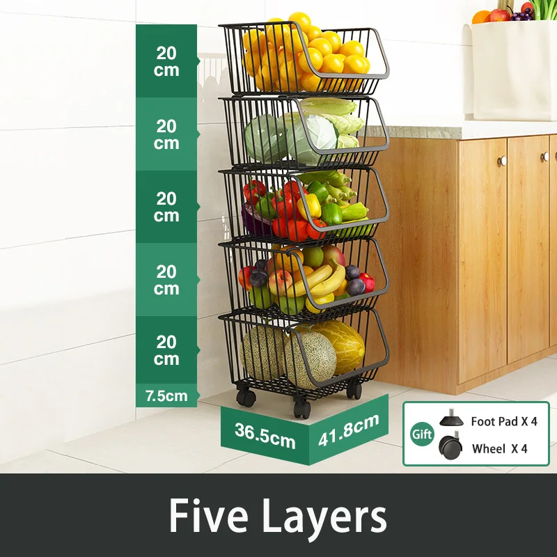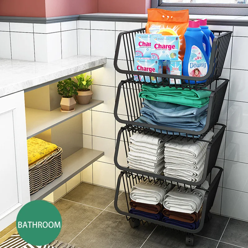 3/4/5 Layers Organizer Cart with Moving Flexible Wheels Bathroom Bedroom Kitchen Hiogh Quality Stainless Steel Kitchen Shelves