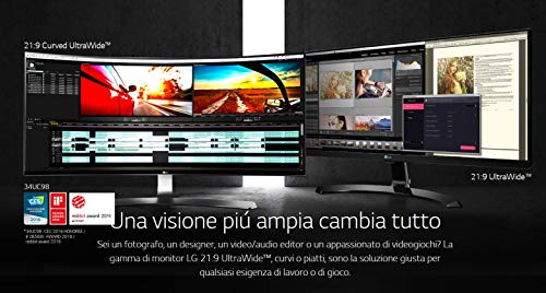 LG 34UM88-P.AEU Monitor 34" 21:9 UltraWide LED IPS, 3440 x 1440, AMD FreeSync 75 Hz, Multitasking, Audio 2.0 14 W, Regolazione Altezza, Thunderbolt, Nero