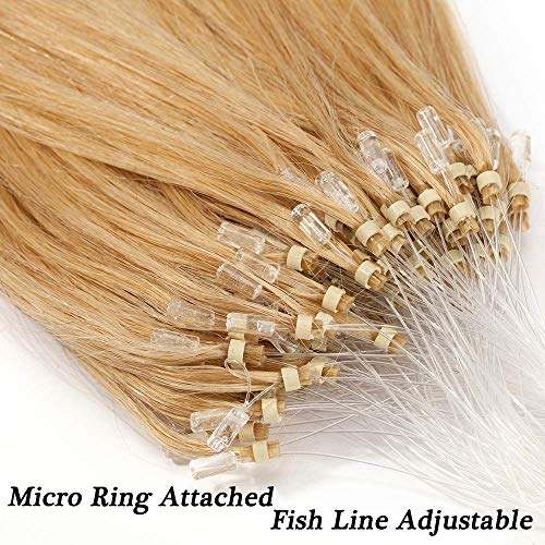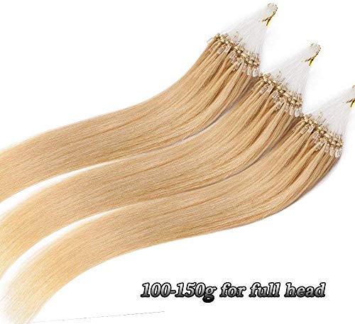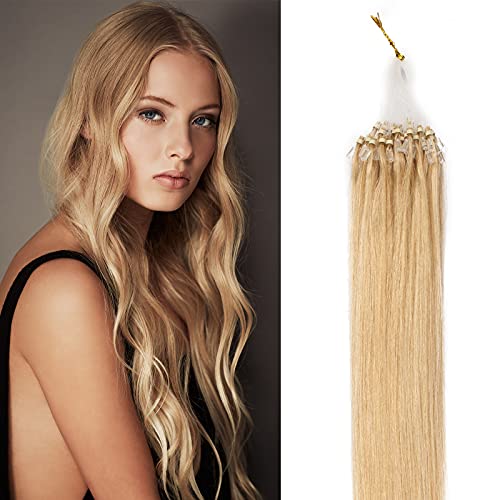 35-60cm - Extension Microring Capelli Veri 100 ciocche Remy Human Hair Extension Anelli Pesa 50g Lunga 35cm, 24 Biondo Chiaro