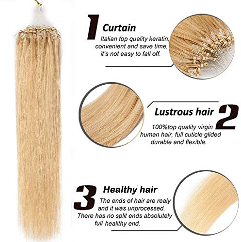 【CAPELLI VERI】 Extension capelli microring fatta da 100% capelli umani, setosi e morbidi, non fa niente danno ai tuoi capelli, né i cuoio capelluto.
