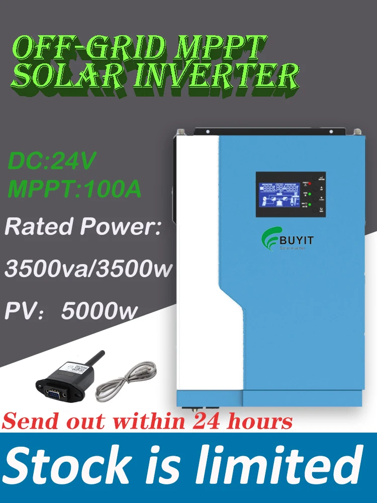 3500W Off Grid Solar Inverter 24VDC 100A Hybrid Inverter Rated Power 3500va PV 5000W with WIFI module Can Work Without Battery