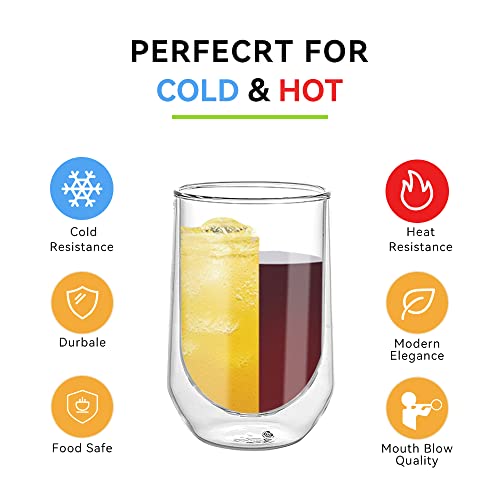 Set di 2, 350ml - DESIGN • MASTER - Tazze in Vetro a Doppia Parete Isolante, Bicchiere da Bere Resistente al Calore in Vetro Borosilicato, Tazze in Vetro per Caffè/Tè, Perfetti per Latte, Cappuccino.