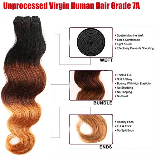 35cm Extension Capelli Veri Tesstura Balayage Matassa Cucitura Mossi Shatush 1 Bundle 100g Remy Human Hair Naturali Umani, 1B/33/27 Nero Naturale Ombre Rosso Vibrante ombre Biondo Scuro