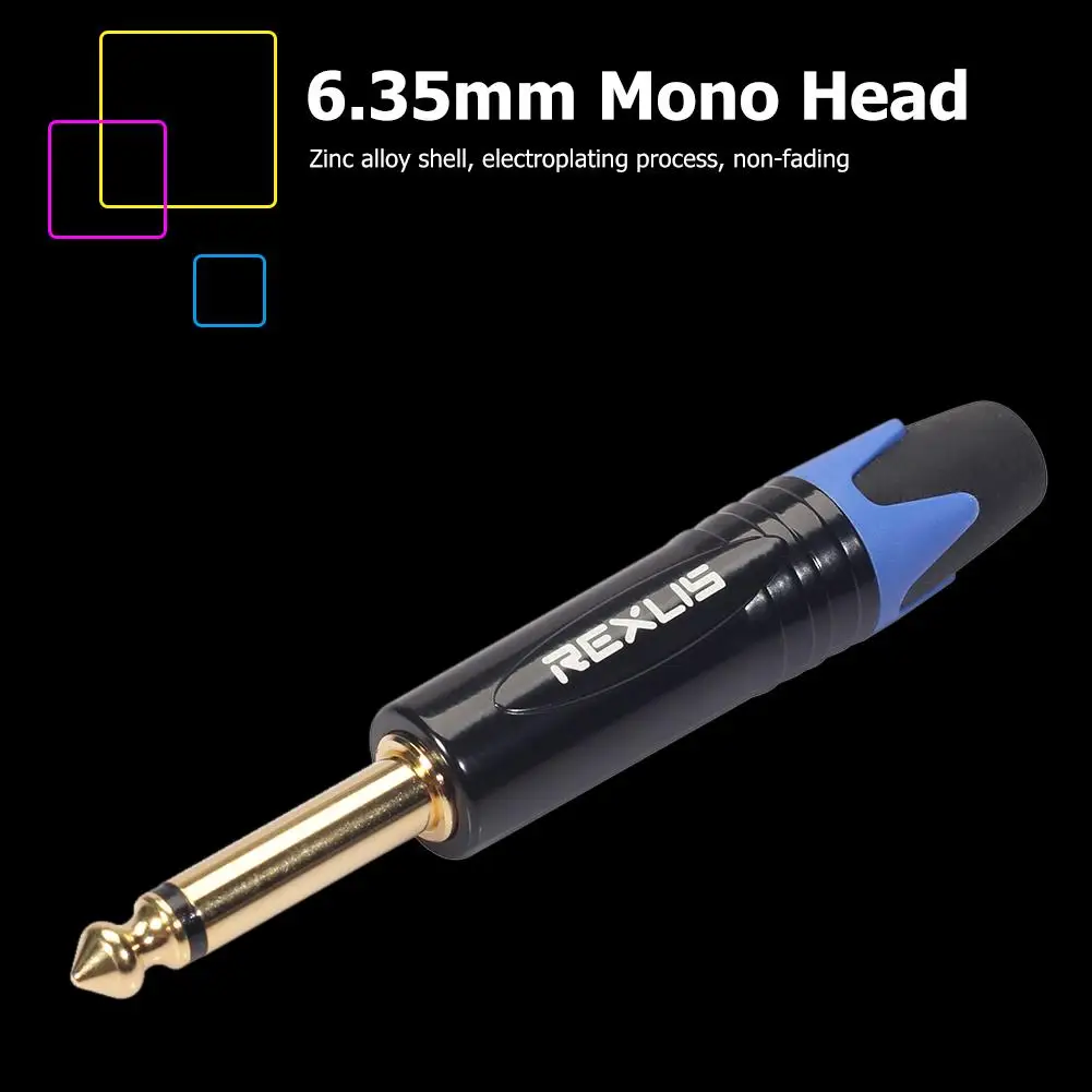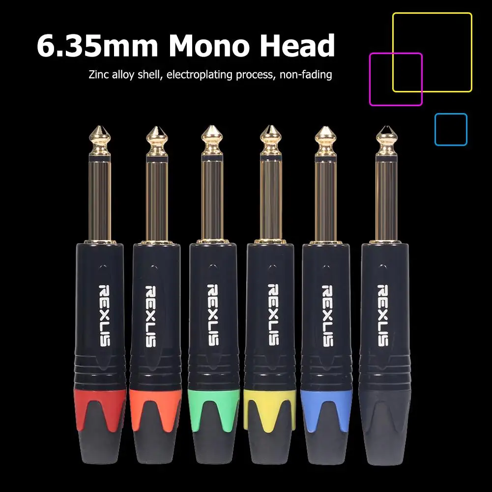 6.35mm Mono Jack Male Plug Connector DIY Soldering Plug for Microphone Audio Cable for DIY Electric Guitar Sound Card Microphone