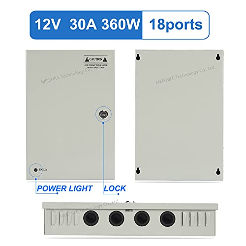 DC 12V 30A 360W, 18 Canali AC to DC Alimentazione elettrica Port Uscita CCTV Scatola di alimentazione distribuita Blocco chiave per telecamera di sicurezza,LED