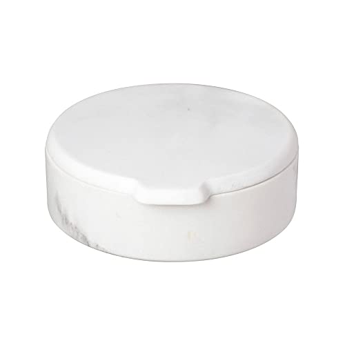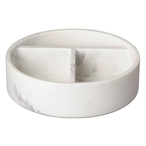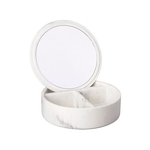 Ho SHO 37-2F-002 - Portagioie Rotondo con Specchio Carrara, in Marmo Bianco, 3 Scomparti, D14 x H5 cm