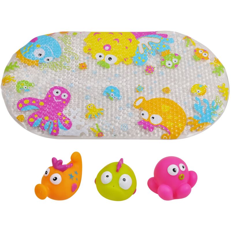 Tre personaggi a spruzzo Tappetino da bagno con ventose circa 69 x 39 cm Inodore Non rimozione di colore Pulizia facile Knorrtoys 37000 - Tappetino da bagno Escabbo, set con 3 divertenti animali marini per il bagnetto
