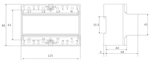 Specifiche del Modello- DTM125 S. Specifiche di tensione: 3x220V / 380V 50Hz, Specifica corrente: 3x20 (80) A (corrente di riferimento, corrente massima).