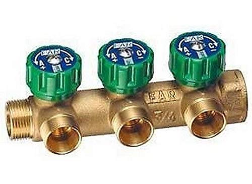 3835 34 3/4" Collettore in ottone "CR" m/f a 3 vie con arresti manuali FAR