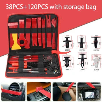 38Pcs Trim Removal Tool Pry Kit Car Panel Tool Radio Removal Tool Kit Clip Pliers Fastener Remover Pry Car Upholstery Repair Kit